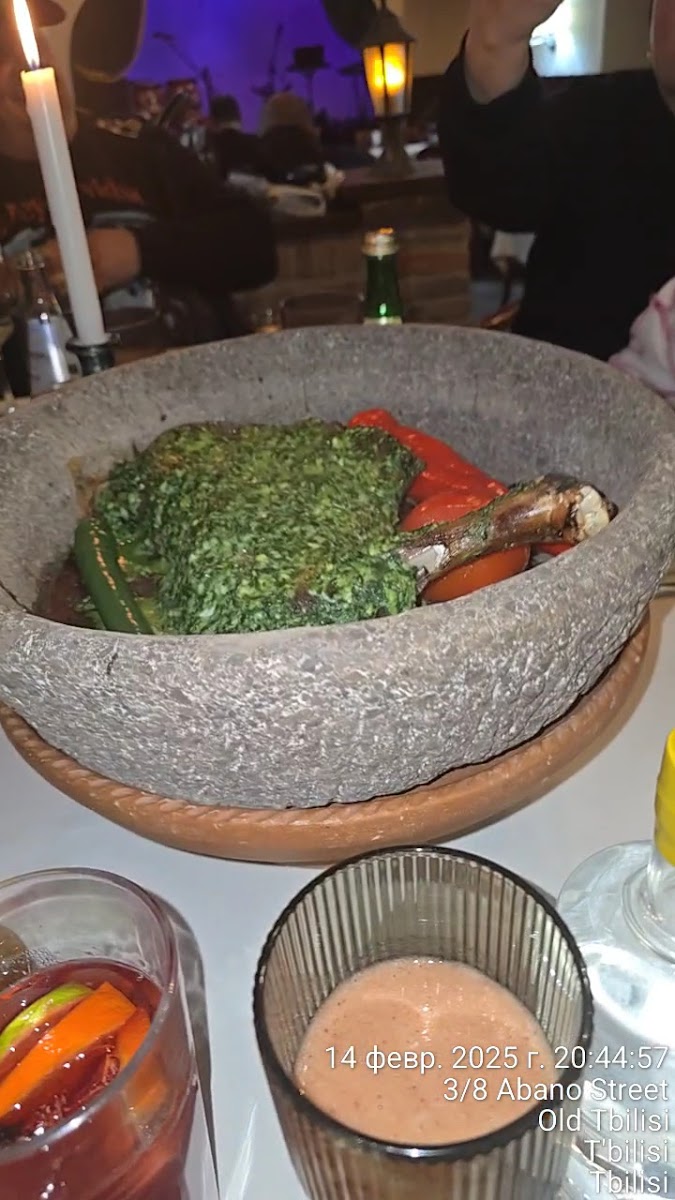 By far the best meal I have had in Tbilisi. I ordered the Chicken Chakhokhbili and it was so flavorful and delicious. The presentation was perfect and you can also enjoy some live traditional Georgian music and Georgian ballet dance while you have your meal. The cocktail was also on point. Highly recommended.